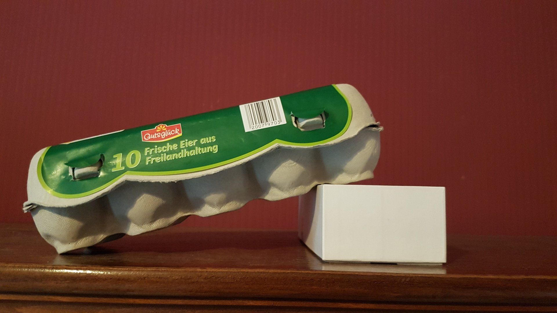 - Zum Wenden während der Lagerung gibt es unterschiedliche Meinungen. Ich wende meine Bruteier dreimal täglich. Das macht sich besonders gut, wenn sich die Eier in einer Eierschachtel befinden und du unter der Hälfte der Packung ein Buch oder ähnliches platzierst. So steht die Eierschachtel mit den Eiern immer leicht gekippt und du kannst die Seite des Buches immer wechseln (siehe Bilder).