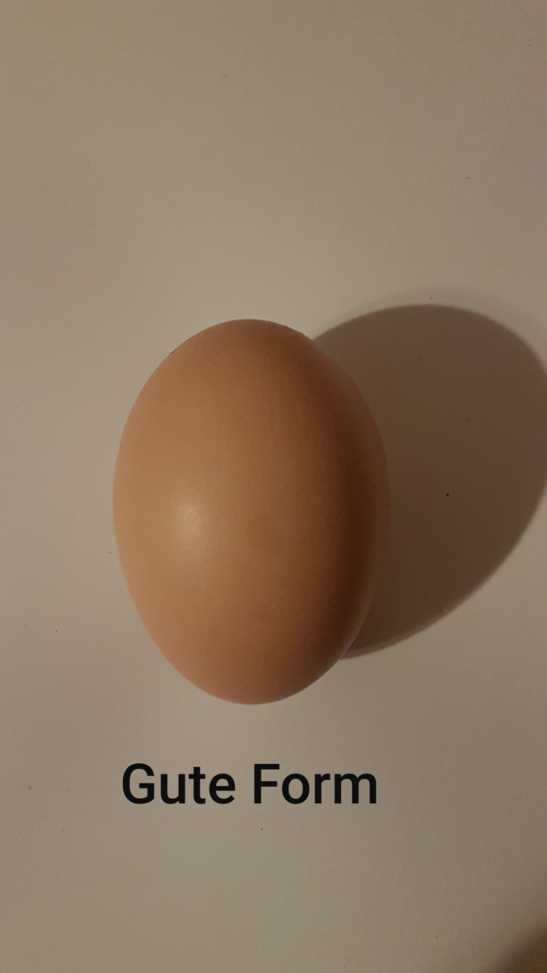 - Die Bruteier sollten eine schöne, typische Eiform aufweisen. Zu spitze und zu runde Eier sollten aussortiert werden. Das Küken könnte zum Schlupf Probleme bekommen, weil es sich im Ei nicht richtig abstützen kann und verendet schließlich.