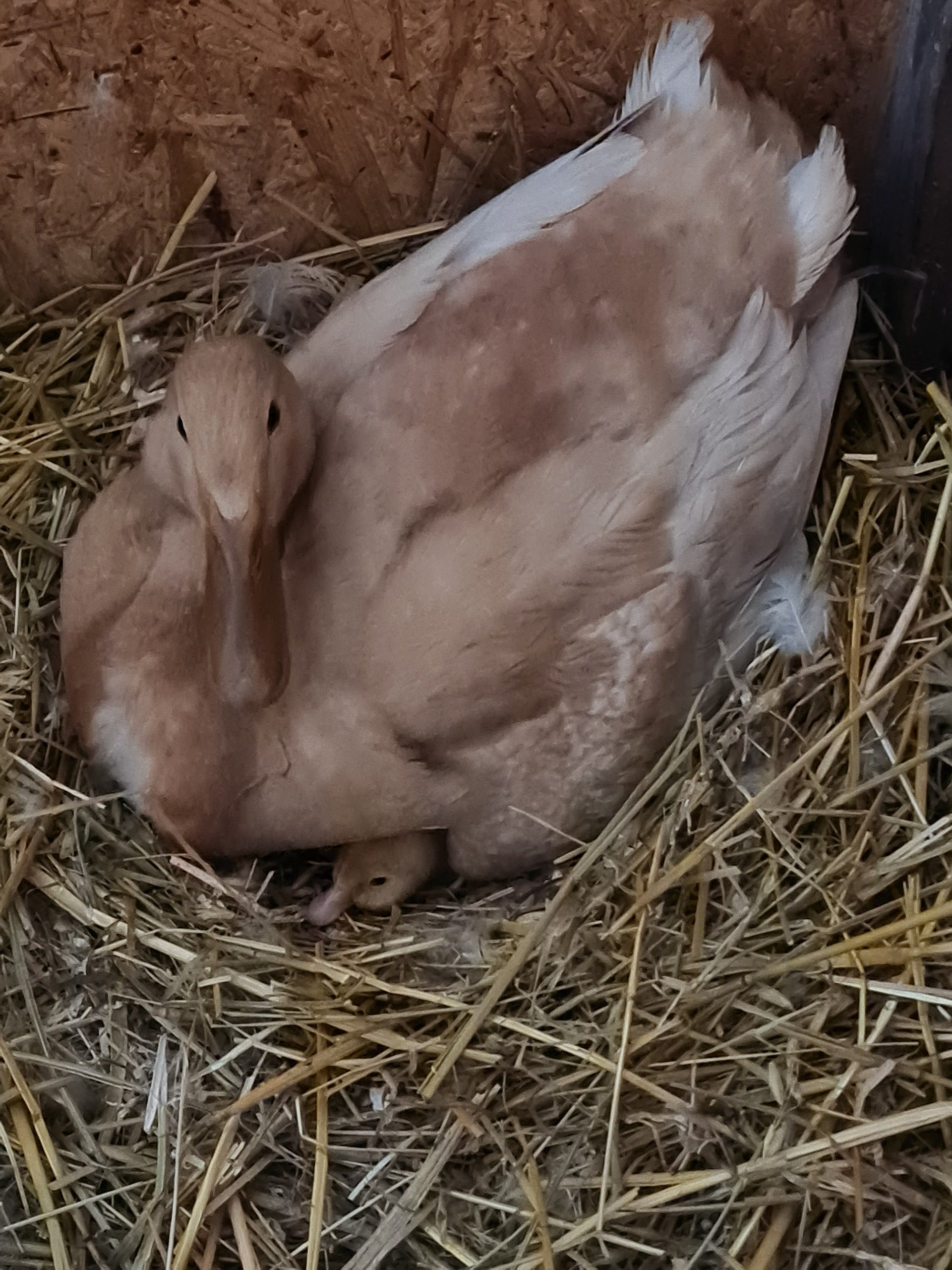 Bereits vor dem Schlupf unterhalten sich die Entchen im Ei untereinander und mit der Mutter. Obwohl die Eier über mehrere Tage gesammelt wurden, schlüpfen die Küken zusammen innerhalb von 1-2 Tagen.